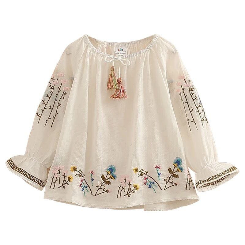 お花の刺繍とカラフルなタッセルがポイントになり、一枚でおしゃれになれちゃうブラウス**〜°*