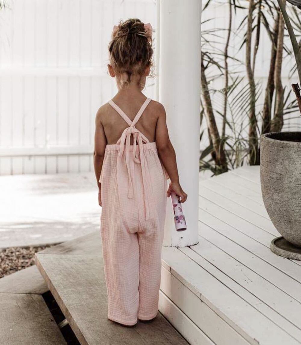 前見頃にはフリル、後ろ見頃はバッククロスリボンで大人可愛いサロペット♡