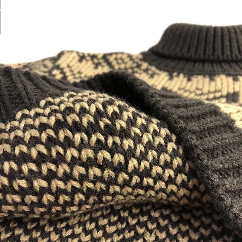 冬の定番ノルディック柄タートルネックニット。
